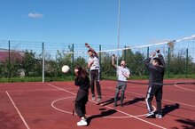 Учащиеся 9 классов начали подготовку к новым сдачам нормативов ГТО. Они выполняли некторые упражнения для разминки на открытой площадке для тренировок.