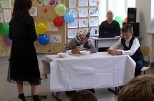 Коновалов мәктәбе укучылары укытучылар һәм чакырылган педагогик хезмәт ветераннары өчен бәйрәм концерты оештырдылар. Шигырьләр сөйләделәр, биеделәр, җырлар җырладылар, юмористик күренешләр күрсәттеләр.