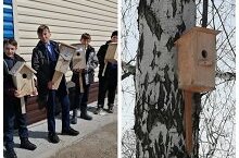 Балалар кошларны сыерчык оялары белән каршы алдылар. -