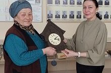 Руководитель школьного музея Пучкова Венера Петровна регулярно ведет работу по обновлению музейных экспонатов, на фото подарок школе от Алексеевой Людмилы Дмитриевны, жительницы села Коноваловка часы с кукушкой.