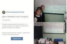 В рамках мероприятий, посвященных Дню Неизвестного солдата в школе прошли классные часы с просмотром презентаций. Учащиеся 8,9 классов прошли тестирование на сайте Поискового движения России.