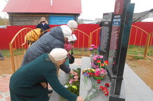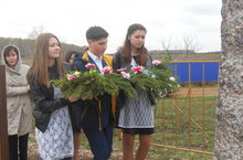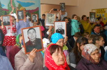 Жители села и учащиеся школы пришли на митинг с портретами своих предков.