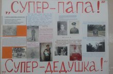 В рамках военно-патриотического месячника в школе оформили стенд "Супер-папа, супер-дедушка", посвященный службе в рядах вооруженных сил отцов и дедушек учащихся.