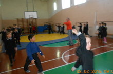 Утренняя зарядка 02.02.2015 Каждое утро для учащихя 1-10 классов учитель физкультуры Закиров В.З. проводит утреннюю зарядку в спортзале.