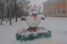 конкурс зимних фигур 19.12.2014 Фантазия каждого класса проявляется в построении снежных фигур. 8 класс слепил главного символа 2015 года-барана. Вот он, кудрявый от снежных хлопьев!