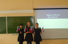 Парламентский урок 29.04.2014 В 1-9,11 классах прошли Парламентские уроки на тему "Мы вместе", посвященный интеграции России, Республики Крым и Севастополя. Учащимся была представлена презентация по этой теме, разобраны географические условия, исторические моменты до интеграции России и Крыма. Цель уроков:воспитание гражданской позиции, формирование патриотизма у учащихся.
