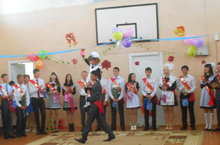Первый звонок 01.09.2014 Сегодня в школе настеҗь дверь распахнута с утра. Минуло лето. В школы вновь шагает детвора. В 2014-2015 уч.году школа принимает 78 обучающихся, из них четверо первоклассников.
