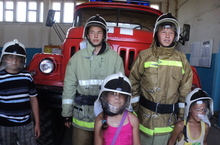 Ребята сегодня отправились на экскурсию ознакомление с профессиями фельдшера, и пожарных. В нашем селе недавно был открыт фельдшерский пункт, и ребятам была прочитана лекция о правилах поведения в жаркую погоду, на воде. Затем пожарные показали свое рабочее место, спецодежду, специальные прспособления для тушения пожаров и рассказали о своем нелегком труде. Ребята посидели в пожарных машинах и даже померяли одежду пожарников.