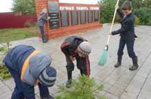 В рамках акции "Осенняя неделя добра" была проведена работа по благоустройству памятника павшим ВОВ.