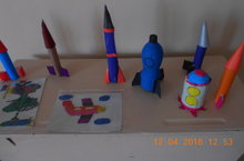 День космонавтики. Выставка поделок 13.04.2016 Учащиеся начальных классов подготовили поделки, связанные с космосом.