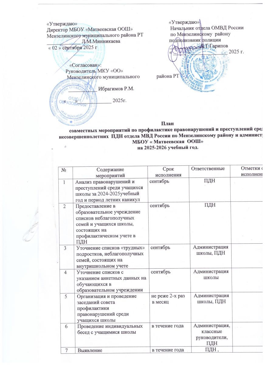 | Адрес: | 423721, Республика Татарстан, Мензелинский район, с. Старая Матвеевка, ул. Горького, дом 5; 423700, Республика Татарстан, г. Мензелинск, ул.Коммунистическая, д.13 |