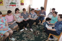 Берләшмәнең икенче өлешендә №5нче балалар бакчасы тәрбиячесе Исакаева Р.Б. “Педккөллият студентлары белән эшләү тәҗрибәсе белән уртаклашу” дип аталган чыгышын ясады . Утырыш ахырында районыбызның төрле бакчасыннан килгән тәрбиячеләр “Татар телен өйрәту буенча педагогик яңалыклар” дип исемләнгән “түгәрәк өстәлдә” фикер алыштылар .