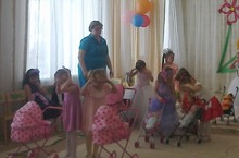 На праздниках в средних группах «Улыбка» и «Умырзая» дети, мамы и бабушки вместе с джином путешествовали на ковре самолёте.