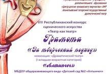 2 нче "Алтынчәч" балалар бакчасында тәрбияләнүче балалар "Театр как театр" VIII Республика сәхнә сәнгате конкурсында катнаштылар һәм "Иҗади якын килү өчен" грамотасы белән бүләкләнделәр.