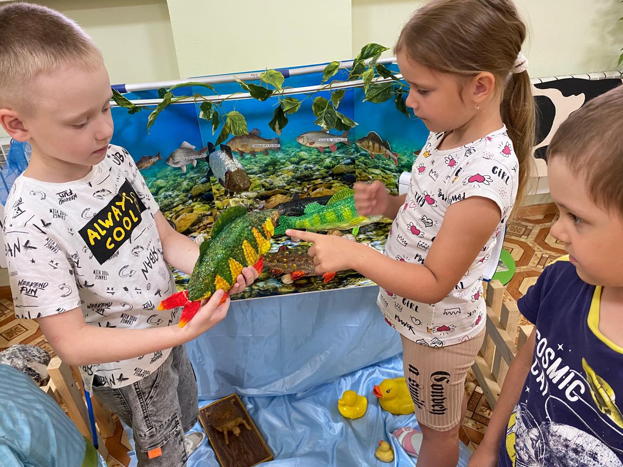 Опубликовано: 02.10.2024Сегодня дети подготовительной группы посетили “Детский агропарк”. Дети продолжили знакомство с профессией “рыболов”. Обогатили словарный запас на татарском языке названия рыб: чуртан, корбан балыгы, алабуга, кара балык, кәрәкә, судак балыгы (сом, щука, лещь, окунь, линь, карась, судак).