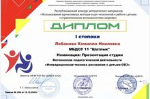 Наш детский сад гордится воспитателем Лобановой К. Н., которая заняла первое место в Республиканском конкурсе методических материалов «Использование проектных методов и арт-технологий в работе с детьми с ограниченными возможностями здоровья (ОВЗ)».