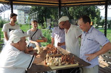 28 июля в Парке Победы снова прошло городское мероприятие для населения. Педагоги Дома детского творчества приняли активное участие в данном мероприятии. Для пенсионеров города был организован турнир по шахматам, педагоги ДДТ играли на равне со всеми. Педагог по ДПИ организовала на аллее парка выставку-прадажу глиняной продукции, а также радовала своими художественными росписями детей.