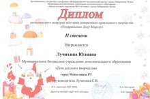 Поздравляем наших воспитанников Лучихину Юлию, Мыльникову Варвару, Кузьмичеву Анну, Елизарова Даниила, Вафина Арслана, Мошкова Антона с призовыми местами в региональном открытом конкурсе-выставке декоративно-прикладного творчества "Поздравление Деду Морозу", который проходил в г. Набережные Челны.