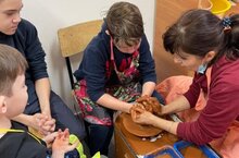 В рамках проекта "Путь к совершенству безграничен" педагог Дома детского творчества Гилязетдинова Ольга Анатольевна проводит серию занятий для учащихся СОШ № 2. Дети знакомятся с техникой безопасности при работе на гончарном круге, основными инструментами для работы, особенностями приготовления глиняной массы, центровкой и открытием комка, с подъёмом стенок и формованием изделия. Освоение гончарного ремёсла является важным этапом работы с глиной.