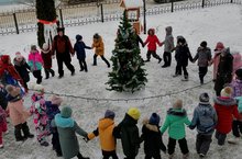 На территории возле Дома детского творчества прошло новогоднее мероприятие для воспитанников ДДТ. Ребята встретились со сказочными героями, символом Нового года, Дедом Морозом и Снегурочкой. Песни, хороводы, танцы, игры не дали ребятам замерзнуть возле красавицы Ёлки.