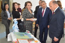 Заместитель Государственного совета РТ Марат Ахметов, председатель Госсовета РТ по экологии Азат Хамаев, депутат Государственной Думы РФ Альфия Когогина с интересом ознакомились с продукцией декоративно-прикладного творчества педагогических работников нашего района, в том числе с работами детей и педагогов Дома детского творчества.