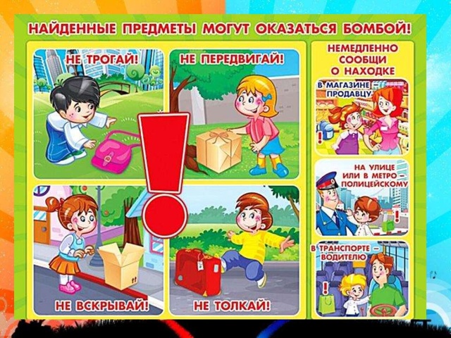 Терроризм — это одно из самых страшных преступлений. Бандиты совершают его, чтобы добиться своих злых целей. Для этого они нагнетают страх в обществе и совершают насилие над людьми. Все террористы — преступники, и после того, как они попадают в руки стражам правопорядка, их судят и сажают в тюрьмы. Скорее всего, вам не придется столкнуться с этим страшным злом — терроризмом, но, к сожалению, угроза терактов существует, и лучше всего быть к ней готовыми. Мы расскажем вам о том, что делать, если теракт все же произошел. Всегда готов! Вы никогда не должны бояться, и это — главное. Но вы всегда должны быть настороже. Нужно быть внимательным к тому, что происходит вокруг, замечать, всели нормально. Надо знать, где находятся выходы из здания, в котором вы находитесь. Нельзя принимать пакеты, сумки, коробки и даже подарки от посторонних людей. Ни в коем случае нельзя трогать предметы, оставленные на улице, в транспорте, в магазинах и общественных местах, даже если это игрушки, мобильные телефоны. Надо знать, где находится ближайшие травмпункт и поликлиника, на случай, если вы или кто-то из ваших родных или знакомых получил ранение или травму. Всегда относитесь серьезно к просьбам покинуть здание (эвакуироваться), даже если вам говорят, что это учения. Такие просьбы надо выполнять обязательно! Если объявили эвакуацию, помните, что надо держаться подальше от окон, стеклянных дверей.
