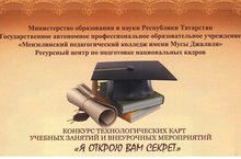 В период с сентября по декабрь 2016 года на базе ГАПОУ «Мензелинский педагогический колледж имени Мусы Джалиля» проходил заочныйреспубликанский конкурстехнологических карт учебных занятий и внеурочных мероприятий «Я открою Вам секрет» среди педагогических работников Республики Татарстан.