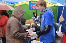 По окончании концерта, перед зданием педагогического колледжа, преподаватели, ветераны и студенты приняли участие в акции голосуем за Казань на новых купюрах.