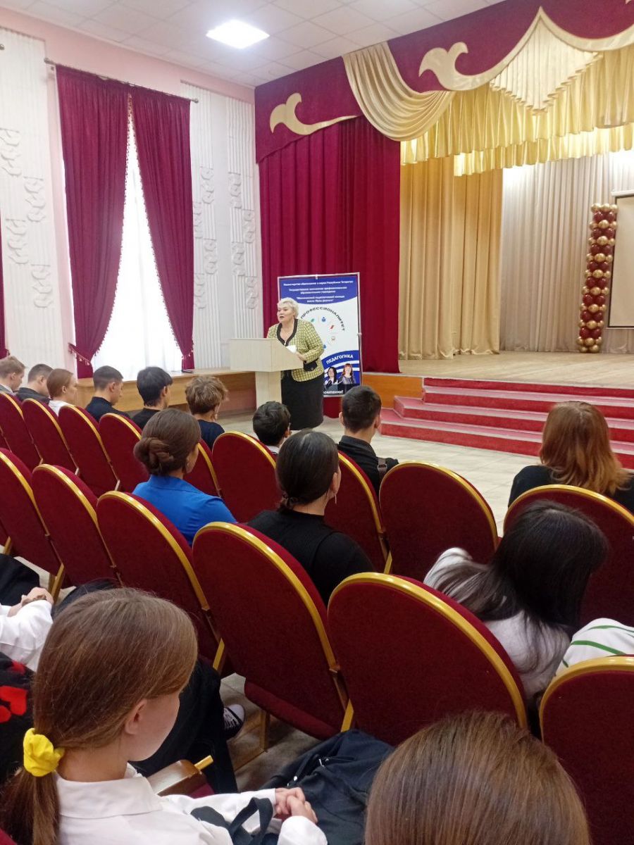 Сегодня в рамках реализации проекта «Профессионалитет», в целях формирования позитивного образа профессии учителя, демонстрации карьерных перспектив в сфере школьного образования для студентов колледжа была организована встреча в директором МБОУ «СОШ №1» Ольгой Владимировной Ильиной.
