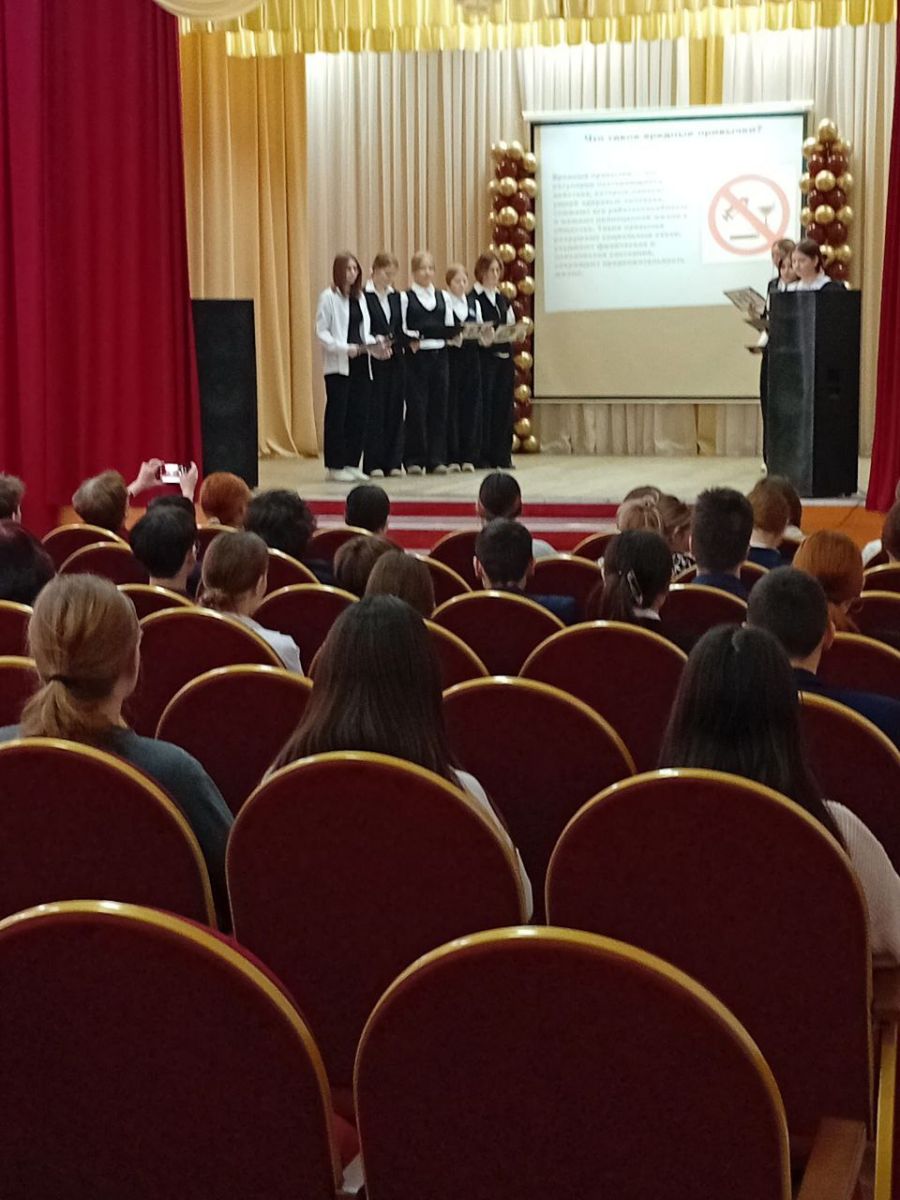 Опубликовано: 29.01.202628 января в актовом зале колледжа в рамках месячника по профилактике правонарушений прошла тематическая линейка, посвящённая борьбе с вредными привычками. Мероприятие организовала группа 1А под руководством куратора Н. И. Московской.