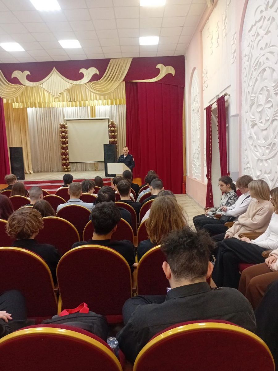 Опубликовано: 04.02.2026В нашем колледже состоялась познавательная встреча студентов с начальником полиции Титовым Сергеем Александровичем.