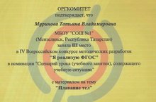 19-20 мая на базе ФГБОУ ВО «Набережночелнинский государственный педагогический университет» состоялся VI Форум педагогических работников Республики Татарстан. В рамках форума состоялось награждение победителей Всероссийского конкурса методических разработок «Я реализую ФГОС». В номинации «Сценарий урока (учебного занятия), содержащего учебную ситуацию» учитель физики Муринова Т.В. заняла III место.
