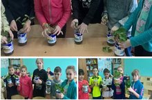 В рамках проводимого конкурса "Озеленение школы", ученики 3в класса (классный руководитель Коршунова Е.А.)посадили ростки герани.