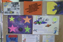 Учащимися школы был составлен стенд к 55 летнему полету Ю. Гагарина в Космос. С 1-4 класса учащиеся рисовали рисунки, а среднее звено составляли коллажи на данную тематику.