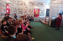 Руководитель школьного музея Ерофеева Ирина Евгеньевна провела «Урок мужества» для учащихся 9Б класса. Во время беседы Ирина Евгеньевна познакомила ребят с историей экспонатов, связанных с Великой Отечественной войной: фотоальбом о детских домах, которые располагались в нашем городе во время войны; с письмами военных лет; с уголком, связанным с раскопками, которые проводят поисковики. Ребята узнали много нового из истории школы во время войны.