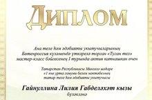 Татар теле һәм әдәбияты укытучысы Гайнуллина Лилия Габделәхәт кызы ана теле һәм әдәбияты укытучыларының Бөтенроссия күләмендә үткәрелә торган «Туган тел» мастер-класс бәйгесендә уңышлы чыгыш ясады , Мәгариф һәм фән министрлыгының дипломына лаек булды.