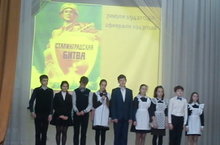 В преддверии празднования Дня Победы в школе проводится цикл линеек, посвященных великому подвигу советского народа в Великой Отечественной войне. 12 марта учащиеся 8а класса под руководством классного руководителя Гайнуллиной Л.Г. провели в актовом зале линейку «Сталинградская битва».
