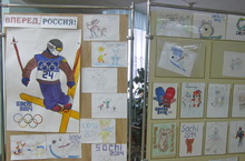 Наша школа тоже болеет за участников зимней Олимпиады в г. Сочи! В связи с этим была организована выставка школьных рисунков с лозунгом «Вперед, Россия!».