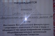 В соревнованиях ГТО среди юнармейцев команда нашего района заняла 5 место из 25 команд. Состав команды: Мордвинов А. (8А), Дудяк Д.(8Б), Бадриева А.(7А), Гатиятова А.(7А). Кроме того, Гатиятова Аделина завоевала личное первое место в соревнованиях. Поздравляем ребят с Большой Победой. Дальнейших успехов