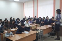 19 октября 2019 года в средней школе №2 г. Мензелинска прошёл татарский диктант. В диктанте приняло участие более 50 человек/ 2019 елның 19 октябрендә Минзәлә шәһәренең 2 нче урта мәктәбендә татар диктанты узды. Диктантта 50 дән артык кеше катнашты.