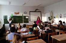 Сегодня учитель физики Хамматова И.И. показала ученикам начальных классов мультфильм "Физика для маленьких". Занимательные беседы Зайца и Робота – всезнайки рассказали ребенку о физике и ее законах, дали ответы на самые сложные вопросы первоклашки. Прогуливаясь в лаборатории, Робот показал Зайцу, как действуют законы тяготения, какие бывают формулы и для чего их нужно знать. Чтобы в голове у ребенка все не перемешалось, герои мультфильма объясняли ему в доступной и понятной форме. Показывали картинки и различные простые схемы. В диалогах Заяц и Робот часто шутили - тем самым, разбавляя учебный процесс.