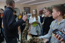Учащиеся 5 б класса вместе с классным руководителем посетили выставку экзотических животных "Мир тропиков". Паука, варана, полоза можно было не только наблюдать , но потрогать руками. Особенно понравилась всем обезьянка, но и крокодил вызвал восхищение. Все остались довольны.
