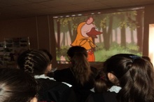 Учителя татарского языка и литературы Залеева Г.Г. и Тимиркаева О.А. на переменах показали мультфильмы, Абдуллы Алиша и Габдуллы Тукая на татарском языке. Особый интерес проявили учащиеся 4-7 классов.