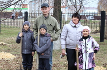 Мясникова С.Е. и Курчаев И.Н. принесли саженцы фруктовых деревьев и посадили с учениками 2 Б класса перед школой.