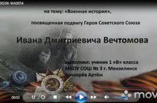 Ученик 1В класса Бочкарев Артем подготовил видеоролик о Герое Советского Союза Вечтомове И.Д. (cсылка для просмотра)
