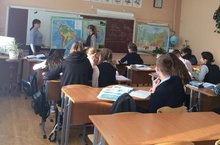 В 8Б классе состоялся урок по теме "Разнообразие природно – территориальных комплексов. ПТК природные, природно-антропогенные и антропогенные. Описание основных компонентов природы России".Цель :актуализировать и систематизировать знания о природных комплексах.Материал урока большей частью состоял из теоретического блока, который очень часто вызывает затруднения у школьников. Поэтому при организации познавательной деятельности требовалась опора на уже имеющиеся знания учащихся о географической оболочке, природных комплексах, взаимосвязи их компонентов. . Учащиеся были активны, умеют высказывать свои мысли вслух не бояться ошибиться. Работали с картой. Время этапов урока было распределено рационально. Каждый этап урока был связан логично с предыдущим, что обеспечило выполнение всей запланированной работы. Все учащиеся были оценены. Цель урока была достигнута.