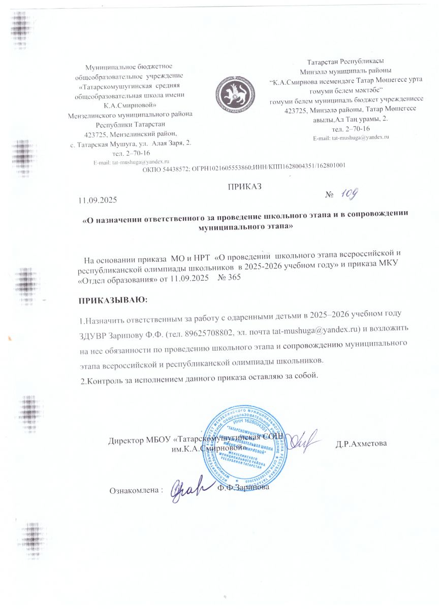 МБОУ "Татарскомушугинская средняя общеобразовательная школа имени К.А.Смирновой" Мензелинского муниципального района Республики Татарстан /Татарстан Республикасы Минзәлә муниципаль районы "К.А.Смирнова исемендәге Татар Мөшегесе урта гомуми белем мәктәбе" гомуми белем муниципаль бюджет учреждениесе
