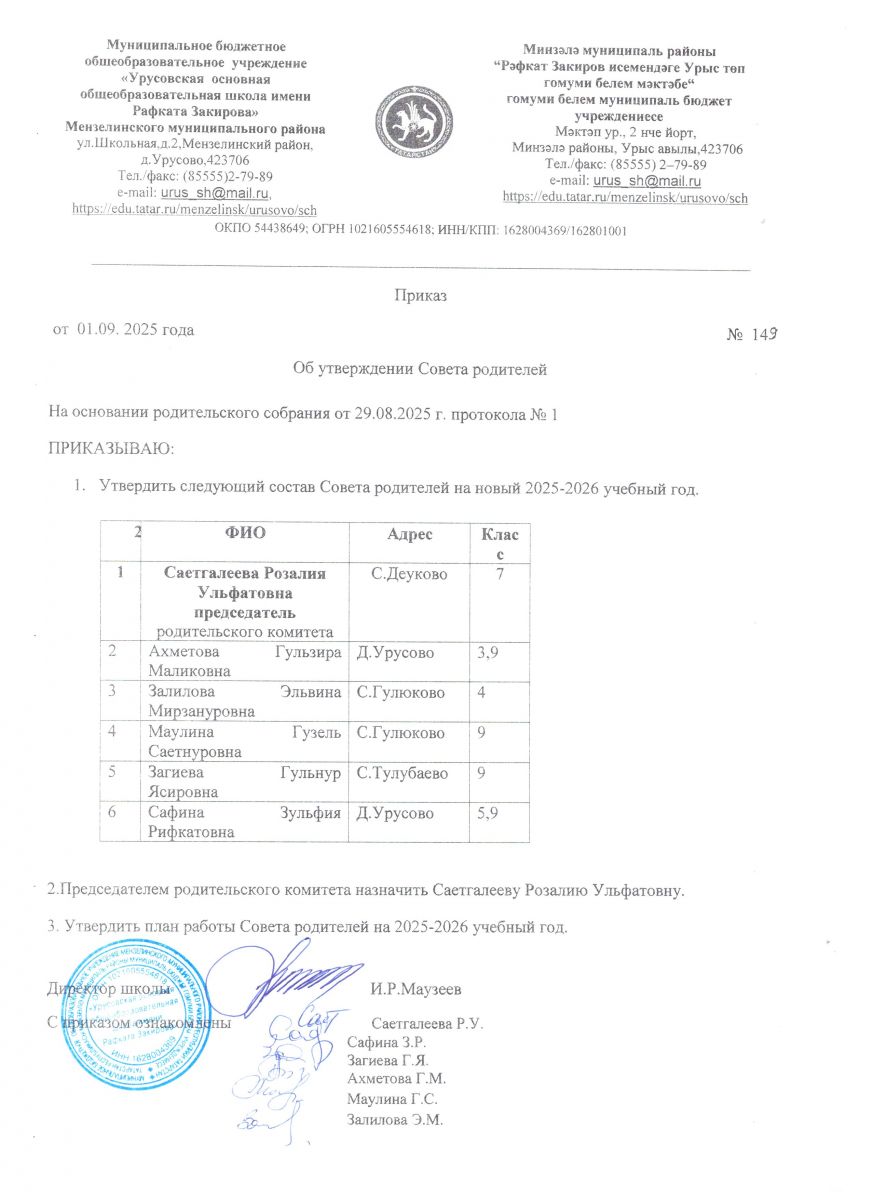 | Адрес: | 423706, Республика Татарстан, Мензелинский район, д. Урусово, ул. Школьная, д. 2 |
