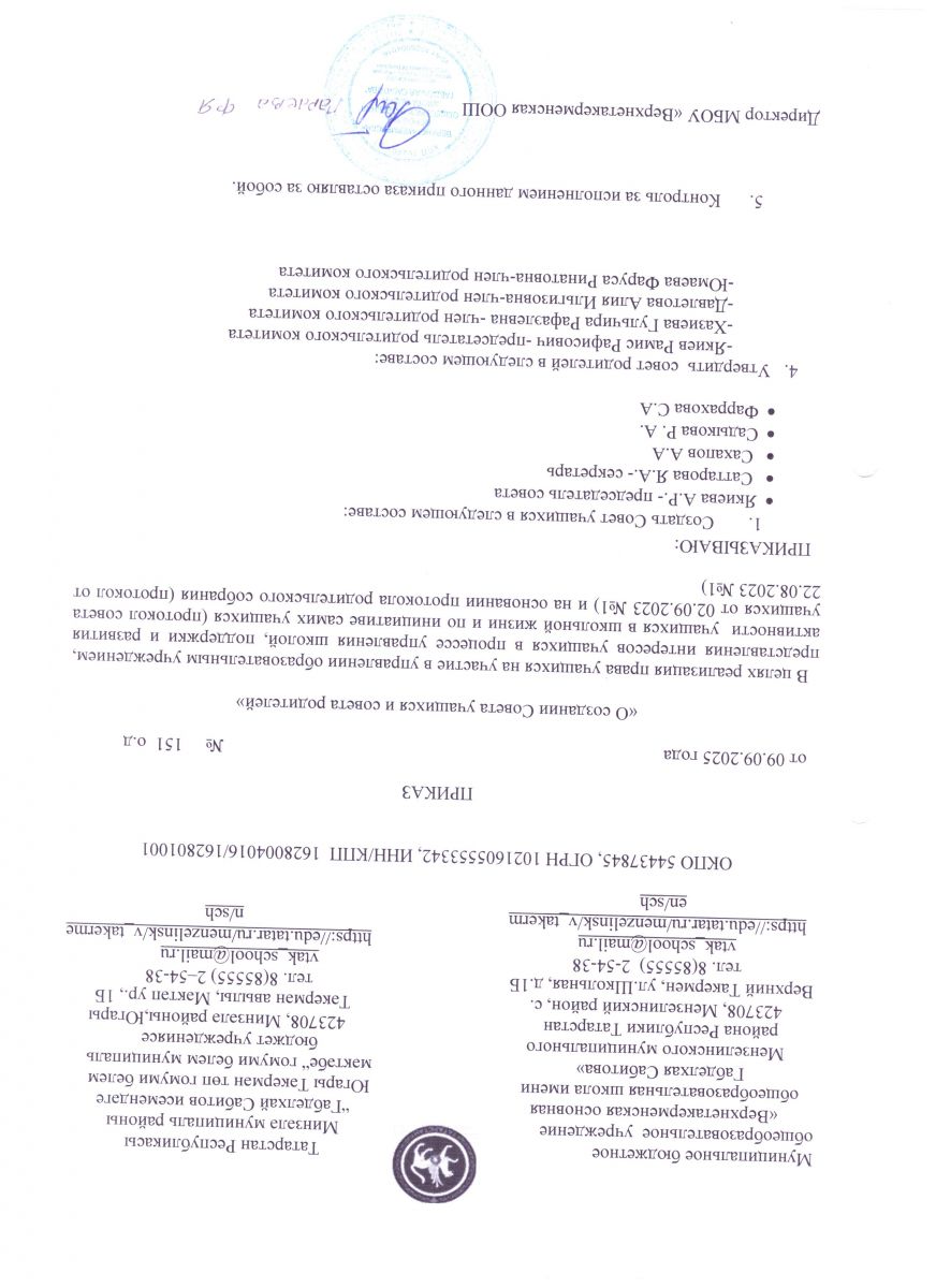Адрес: 423708, Республика Татарстан, Мензелинский район, c. Верхний Такермен, ул. Школьная, д1Б. 423700, Республика Татарстан, г. Мензелинск, ул. Коммунистическая, д. 13