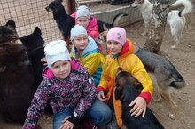 Четвероногие друзья получили в подарок корма и предметы гигиены, а ребята - заряд позитива и доброты от пушистых хвостатых обитателей приюта.